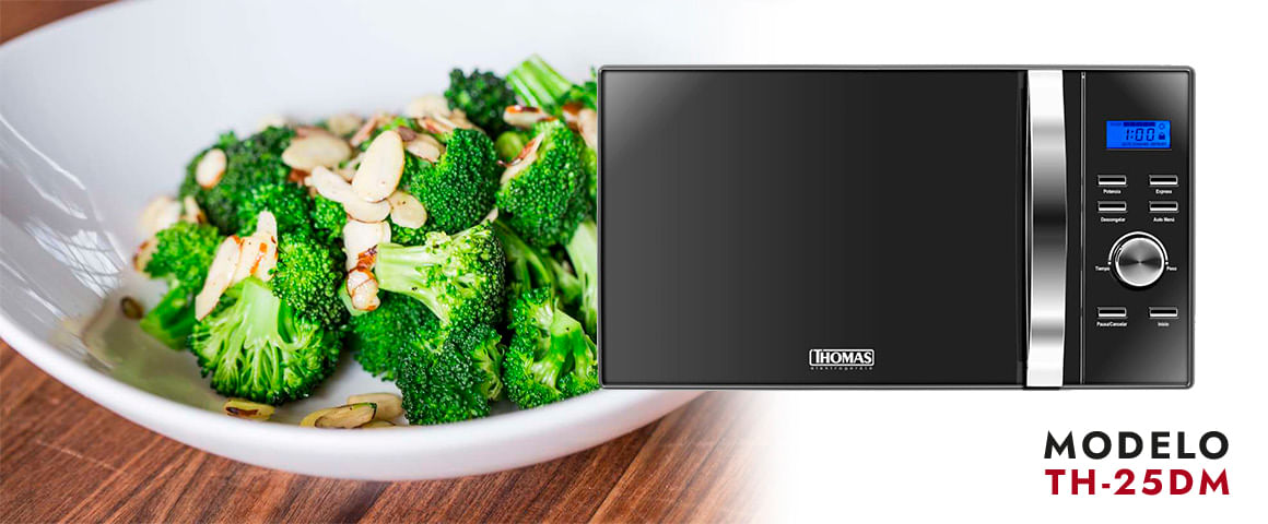 TUS RECETAS FAVORITAS SALDRÁN PERFECTAS CON THOMAS Con un diseño vanguardista, este microondas entrega todo lo que necesitas: gran potencia y capacidad, sin alterar el sabor o textura de tus alimentos. Gran capacidad de 25 lts con 900W y 5 niveles de potencia. Cocina deliciosos platos en minutos con la ayuda de sus 8 menús automáticos. *La imagen es referencial ![]() TIMER 60 minutos con bandeja giratoria que permite una cocción uniforme. *La imagen es referencial ![]() AUTO MENÚ Cocinar los alimentos automáticamente sin necesidad de ingresar el tiempo o potencia requeridos. *La imagen es referencial ![]() DESCONGELAR 3 funciones para cualquier alimento (carnes, ave y pescados). Ésta evita la formación de bacterias que aparecen al descongelar naturalmente. *La imagen es referencial ![]() ¿No es el Horno Microondas que buscas? Encuentra más productos de Thomas en plazaVea Revisa todo Hornos Microondas |
