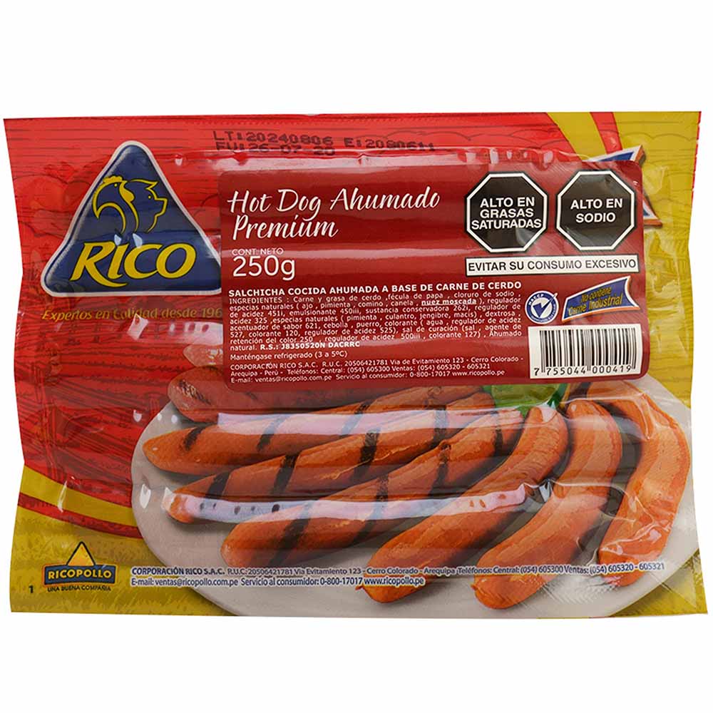Hot Dog Ahumado RICO POLLO Paquete 250g