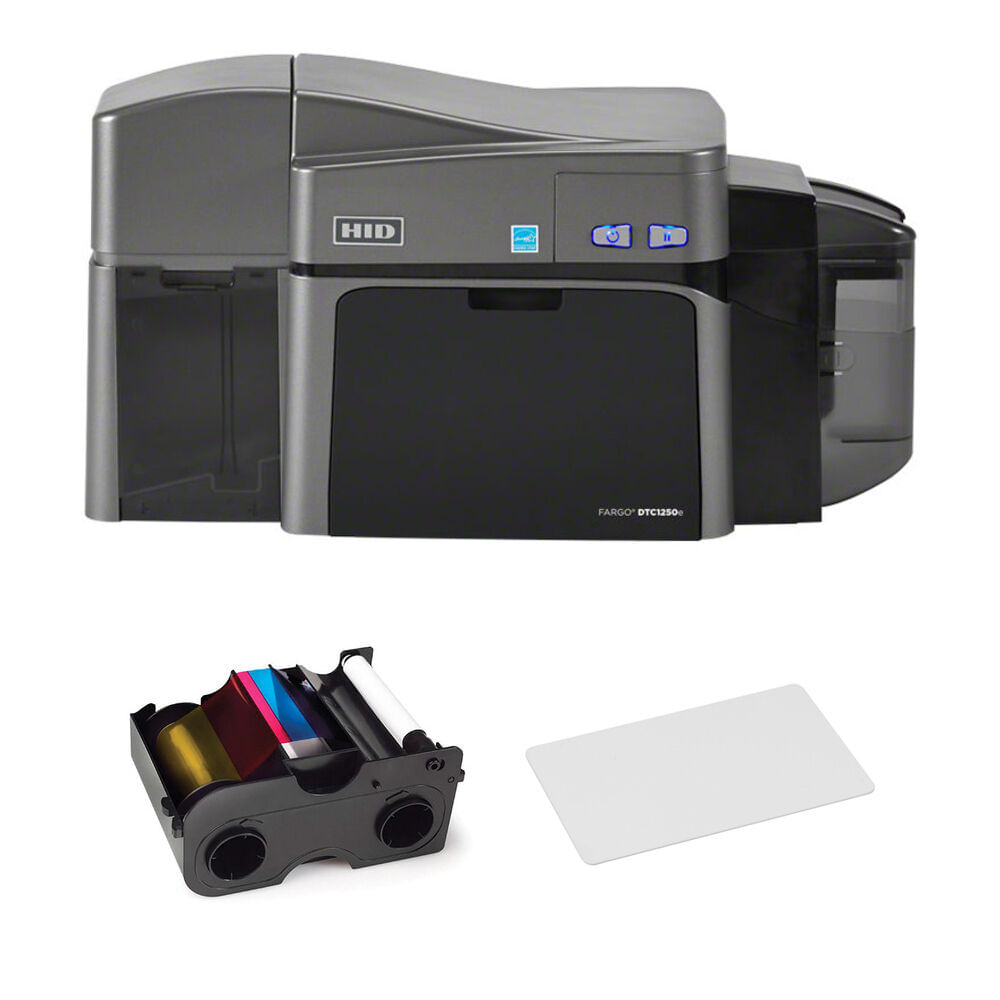 Impresora de Tarjetas de Identificación Doble Cara Fargo DTC1250e con Cinta YMCKO y Kit de 500 Tarje