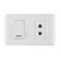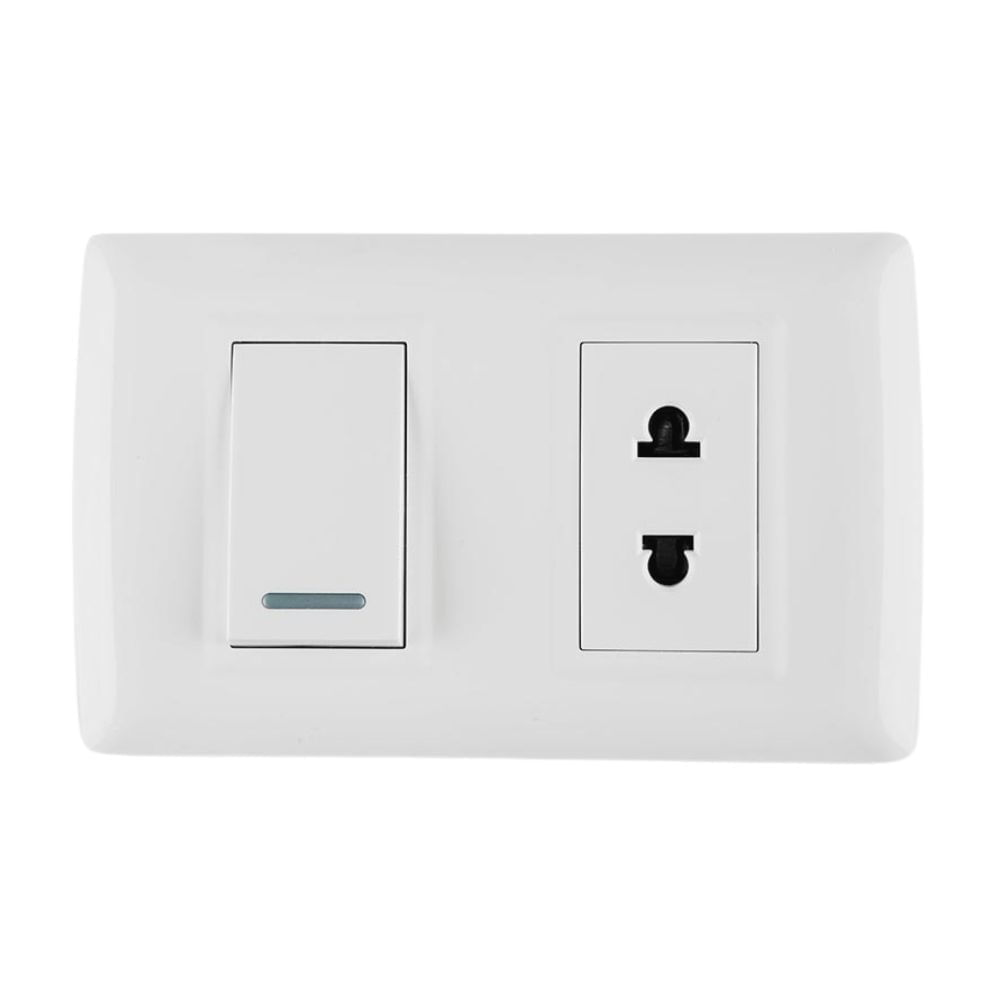 | Características | Placa mixto toma + interruptor tipo empotrable, para instalaciones domésticas de uso interno, además cuenta con una pequeña cinta reflectiva el cual me permíte identificar la posición del interruptor en la oscuridad y tienen bornes con doble agujero para derivaciones. |