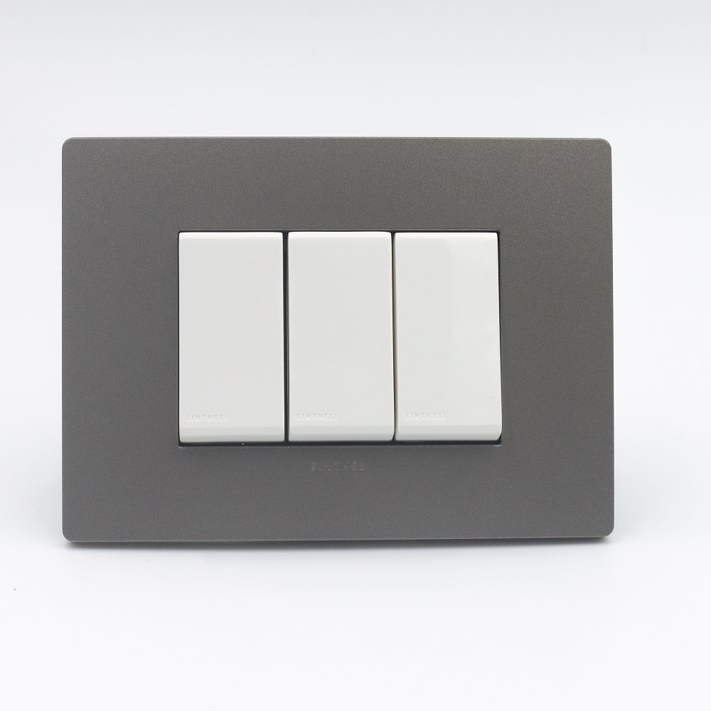 INTERRUPTOR TRIPLE 2 SIMPLE Y 1 CONMUTADOR 3 VIAS SINTHESI S33 PLACA PIEDRA Y DADOS BLANCOS