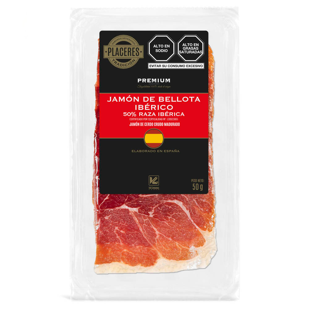 Jamón de Bellota Ibérico 50% Laminado PLACERES Paquete 50g