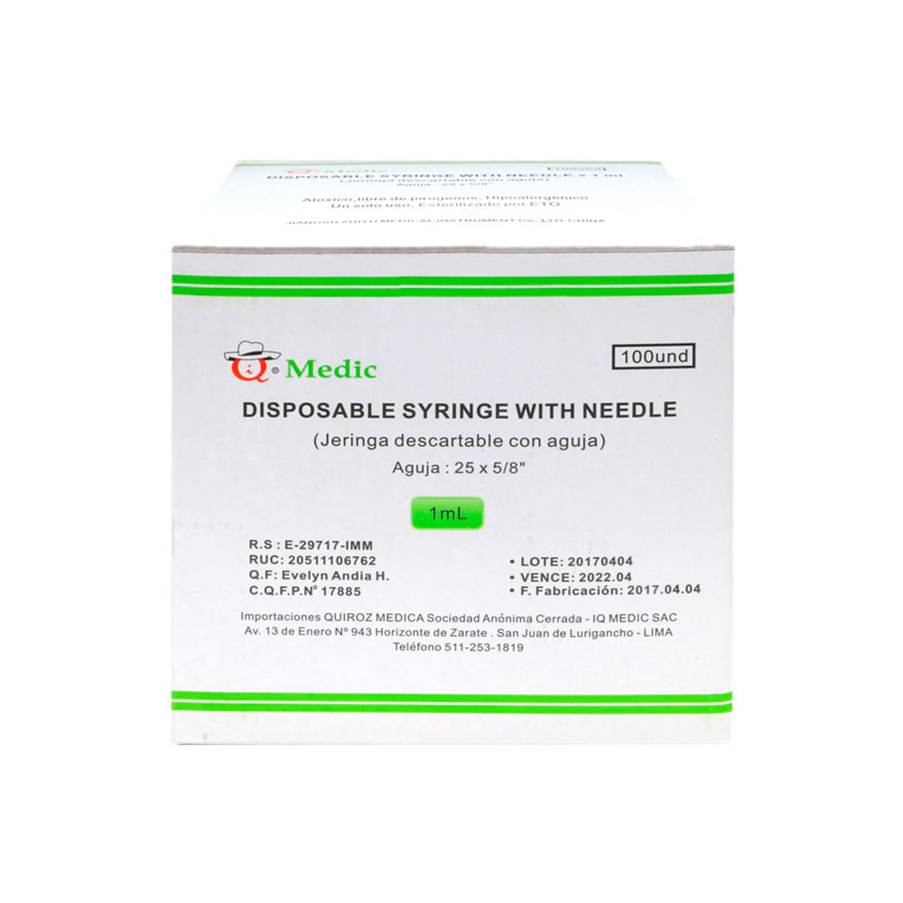 Jeringa Descartable de Tuberculina 1cc + Aguja#25 - Caja 100 UN