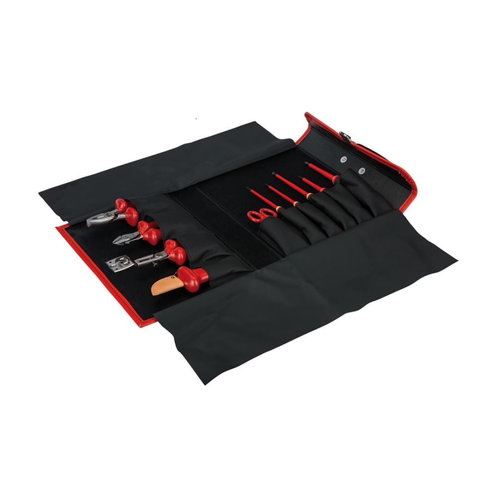 | Características | Composición de herramientas aisladas para electricistas en estuche plegable: 10 piezas 3045/1VDE Para trabajar en equipos con corrientes de hasta 1000 V, de conformidad con IEC 60900. En un estuche plegable. Cada una de las herramientas se prueba con 10 000 V durante 10 segundos al final de su ciclo de fabricación. |