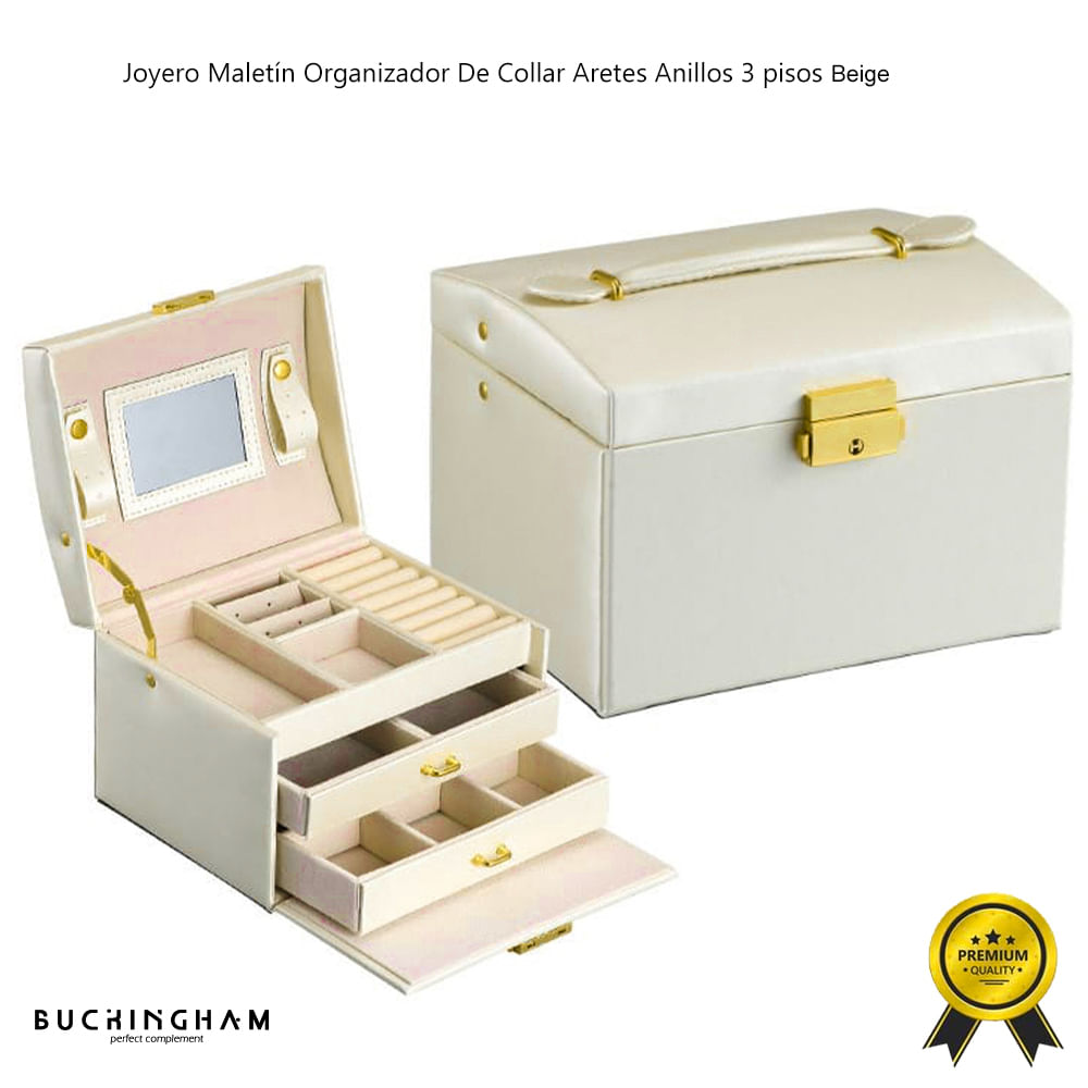 Joyero Maletín Organizador De Collar Aretes Anillos 3 pisos Blanco