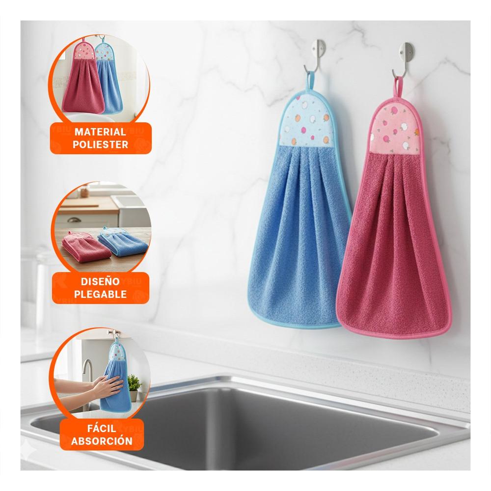 Juego 2 Piezas Fucsia y Azul Toallas Colgador Colorido 28x38cm Y+Post It