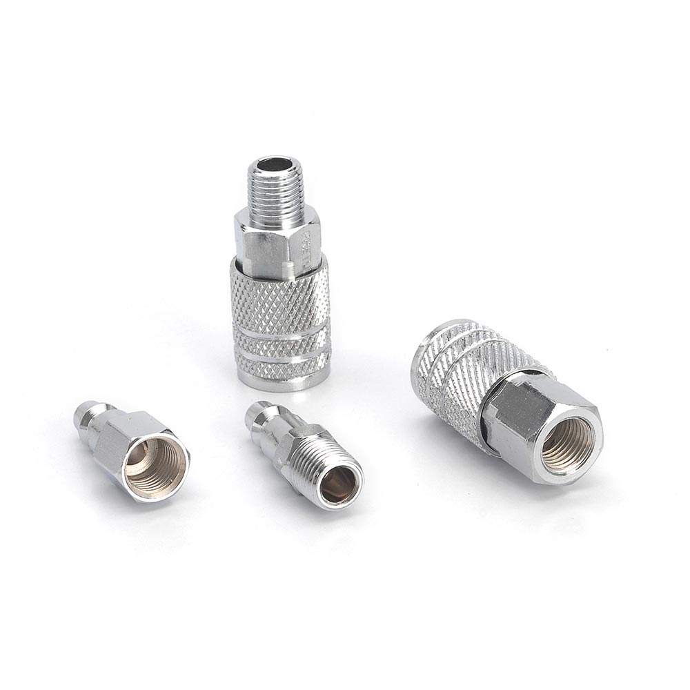 | Características | Juego de acoples y conectores rápidos, súper resistentes, de gran calidad y diseño. Hecho de acero cromado. |
