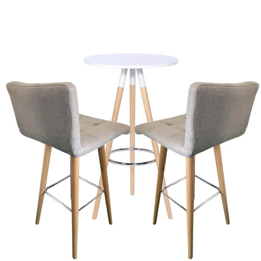 Juego de Bar Mesa Nórdico + 2 Bancos Nórdico Cuadrado Blanco / Gris