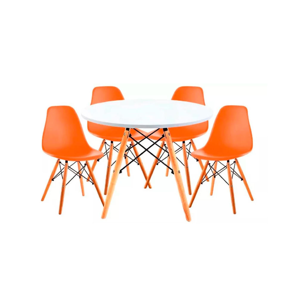 Juego De Comedor Eames Blanco 100 Cm 4 Personas Silla Eames Naranja Ofideas
