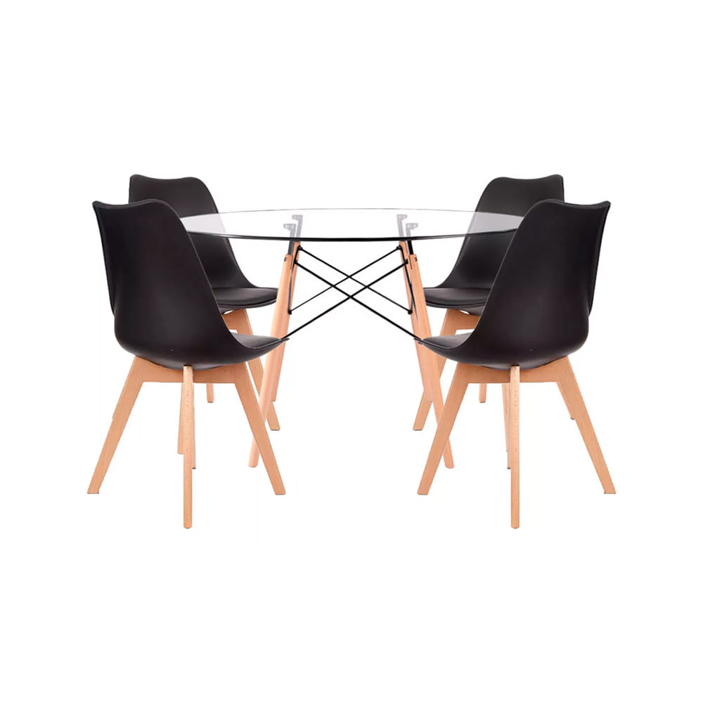 Juego De Comedor Eames Vidrio 4 Personas Silla Ema Negro Ofideas