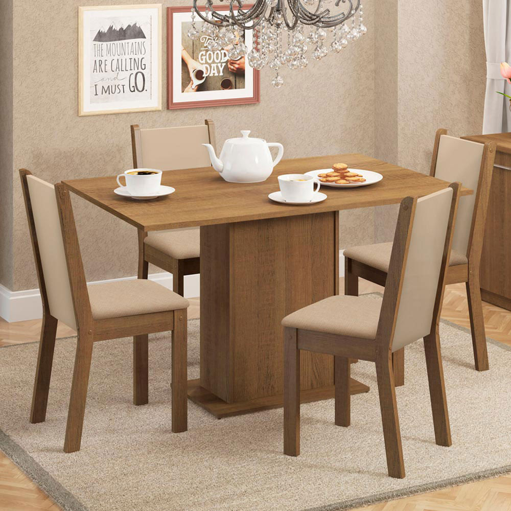 Juego de Comedor Talita con 4 Sillas - Marrón y Beige