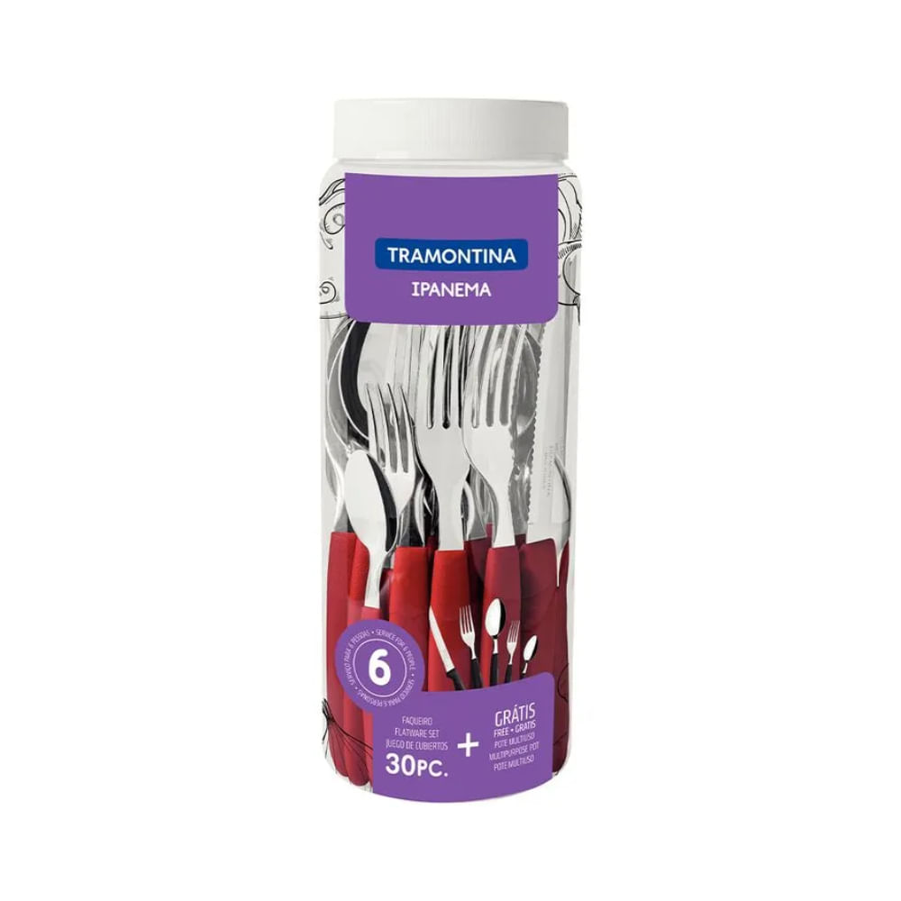 Juego de Cubiertos Tramontina Ipanema Rojo - 30 Piezas Elegantes y Modernas
