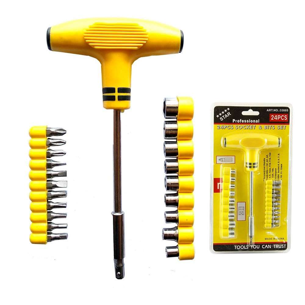 Juego de Destornilladores en T de 24 Piezas Trinquete Llaves Dado