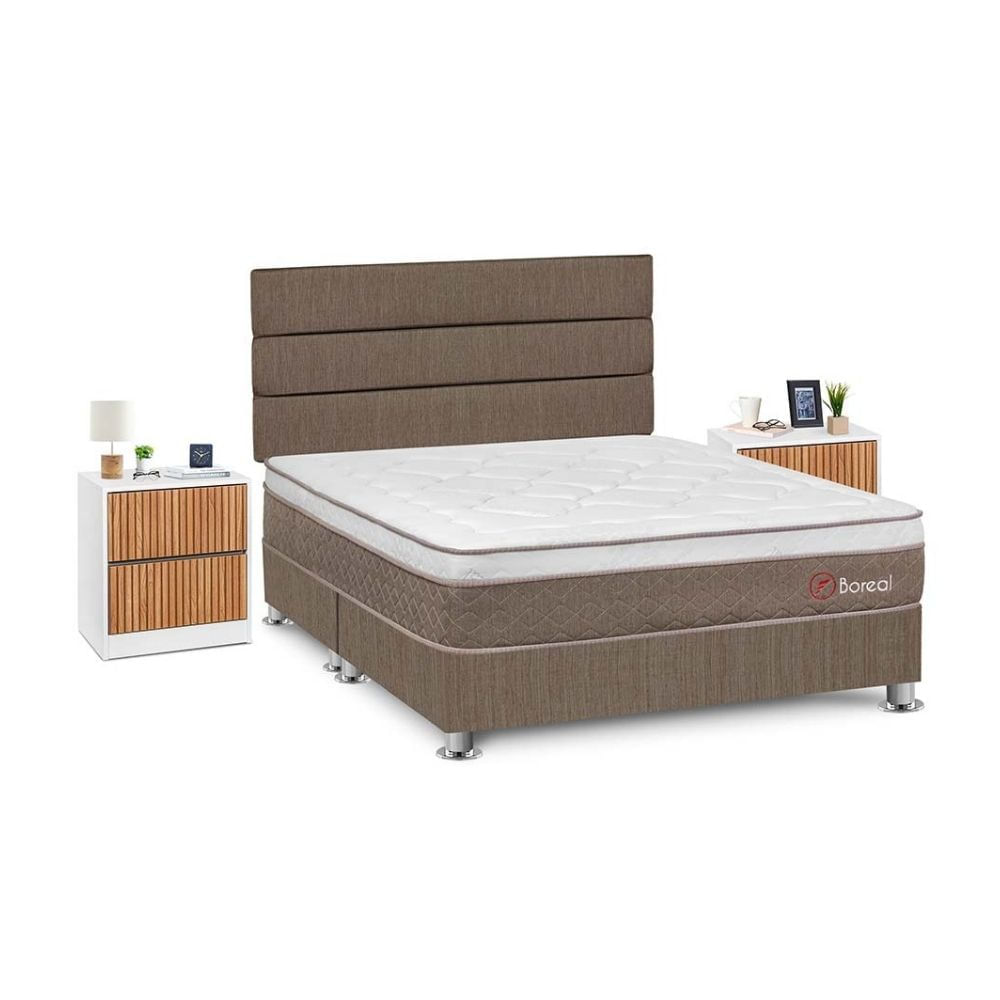 Juego de Dormitorio Forli Boreal Queen Marrón + Velador Roma
