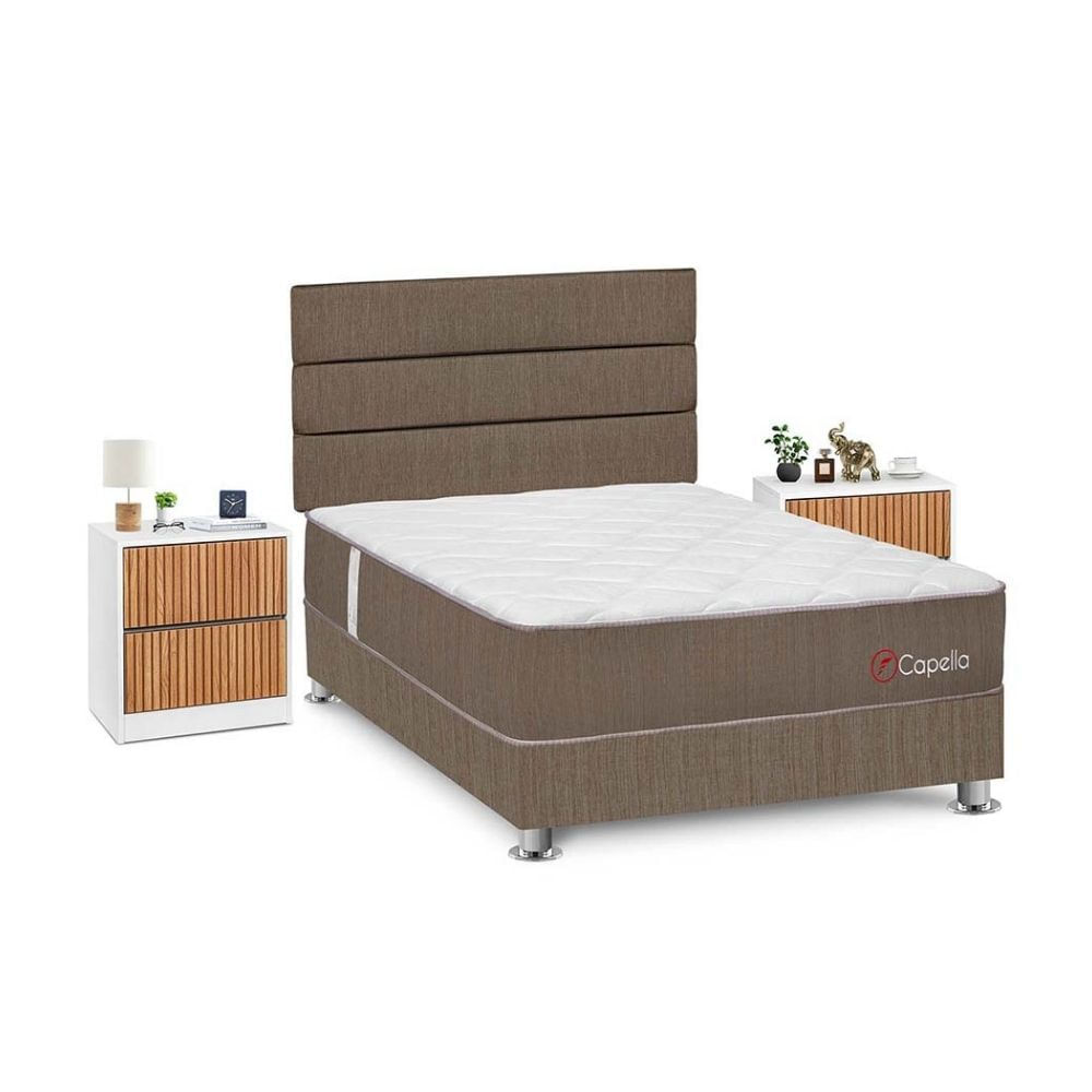 Juego de Dormitorio Forli Capella 2 Plazas Marrón + Velador Roma