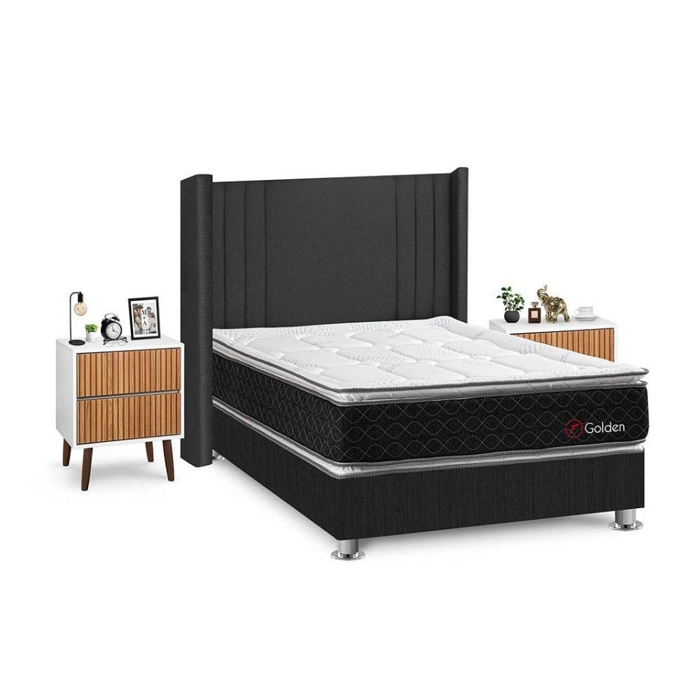 Juego de Dormitorio Forli Golden 2 Plazas Gris + Velador Milan
