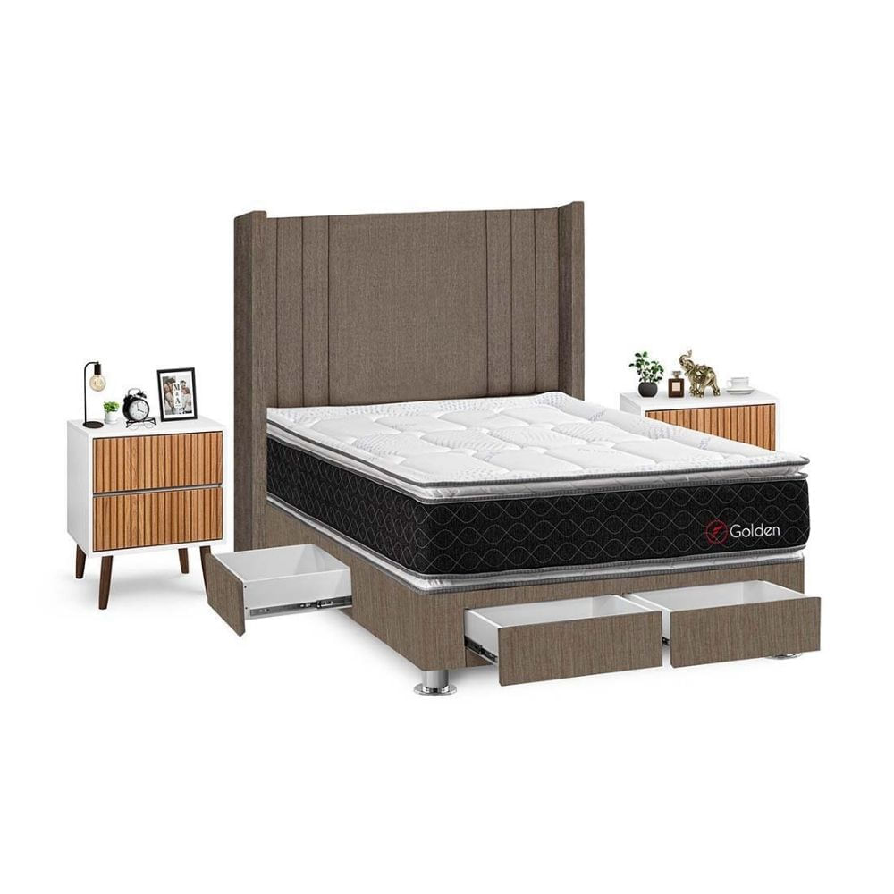 Juego de Dormitorio Forli Golden 4 Cajones 2 Plazas Marrón + Velador Milan
