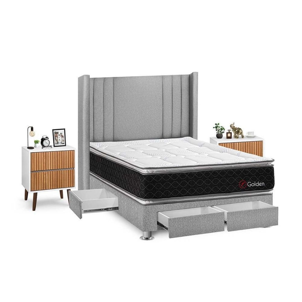 Juego de Dormitorio Forli Golden 4 Cajones 2 Plazas Plata + Velador Milan