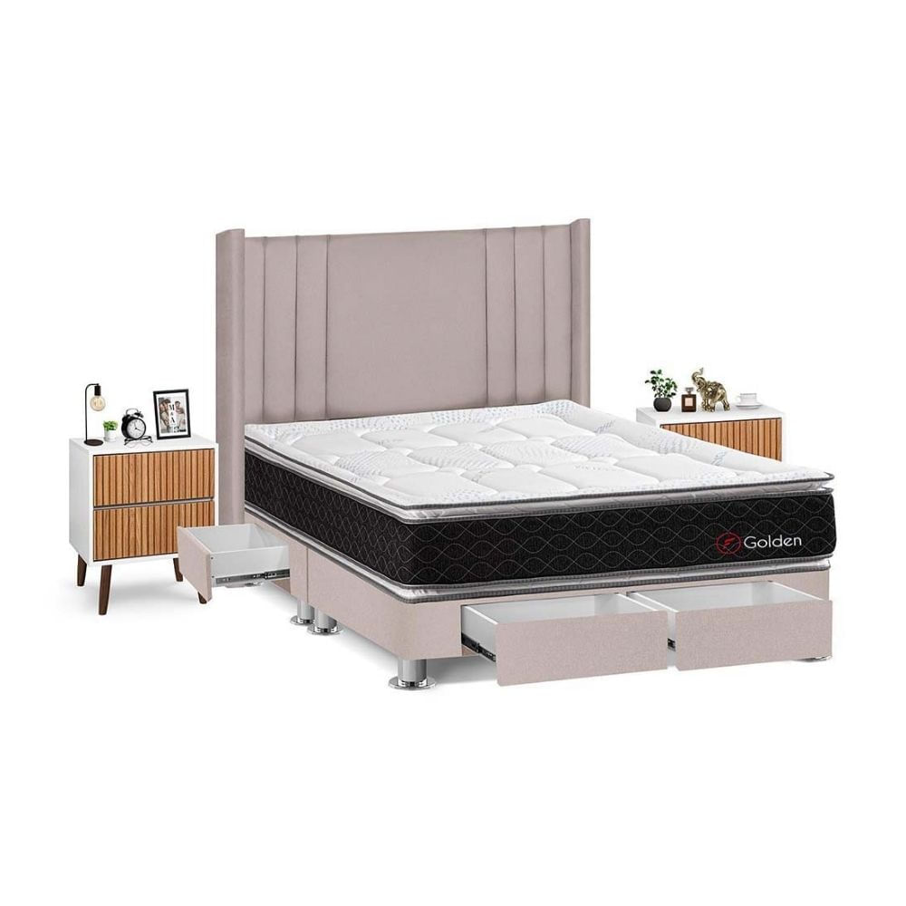 Juego de Dormitorio Forli Golden 4 Cajones King Beige + Velador Milan