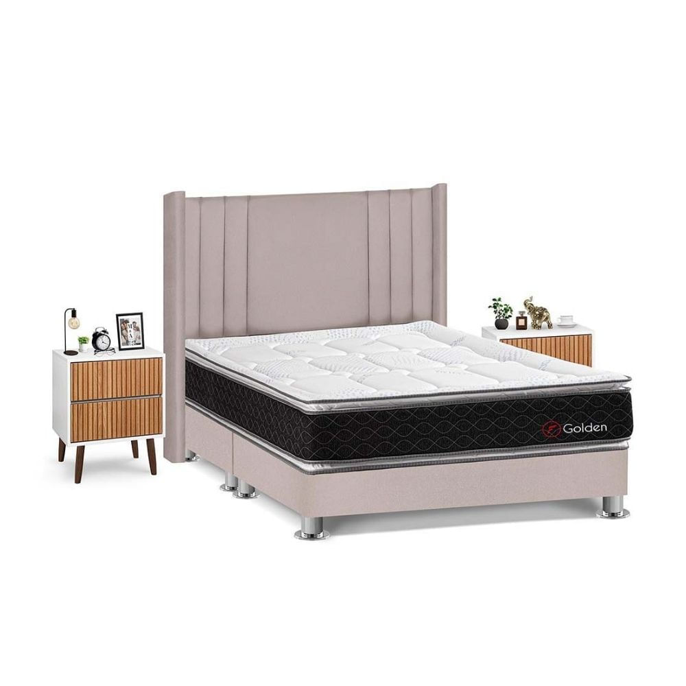 Juego de Dormitorio Forli Golden Queen Beige + Velador Milan