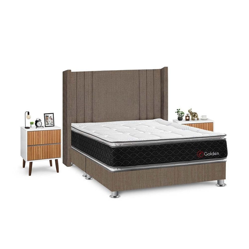 Juego de Dormitorio Forli Golden Queen Marrón + Velador Milan
