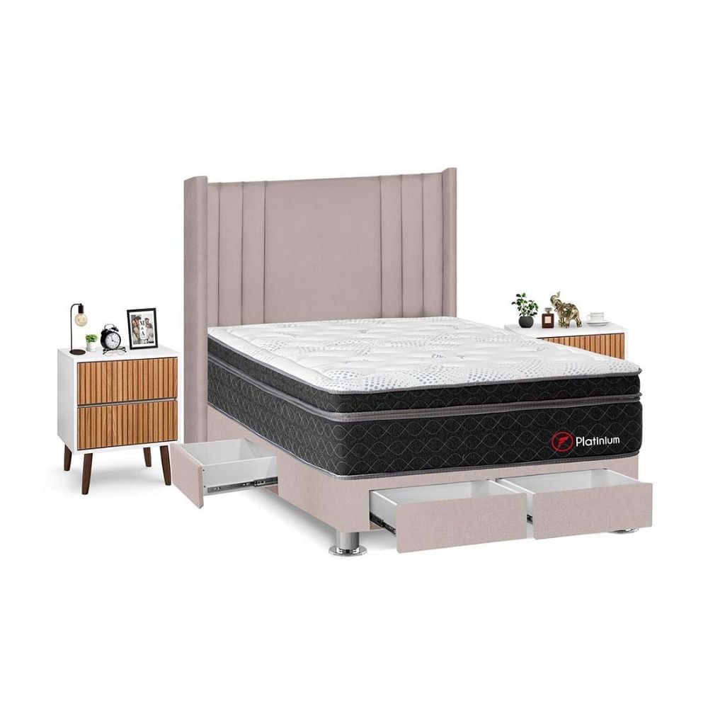 Juego de Dormitorio Forli Platinium 4 Cajones 2 Plazas Beige + Velador Milan