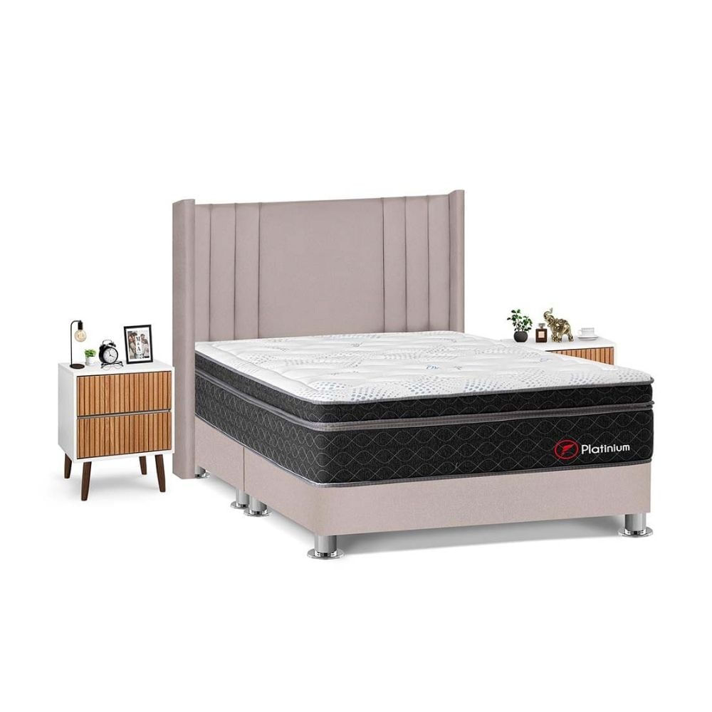 Juego de Dormitorio Forli Platinium King Beige + Velador Milan