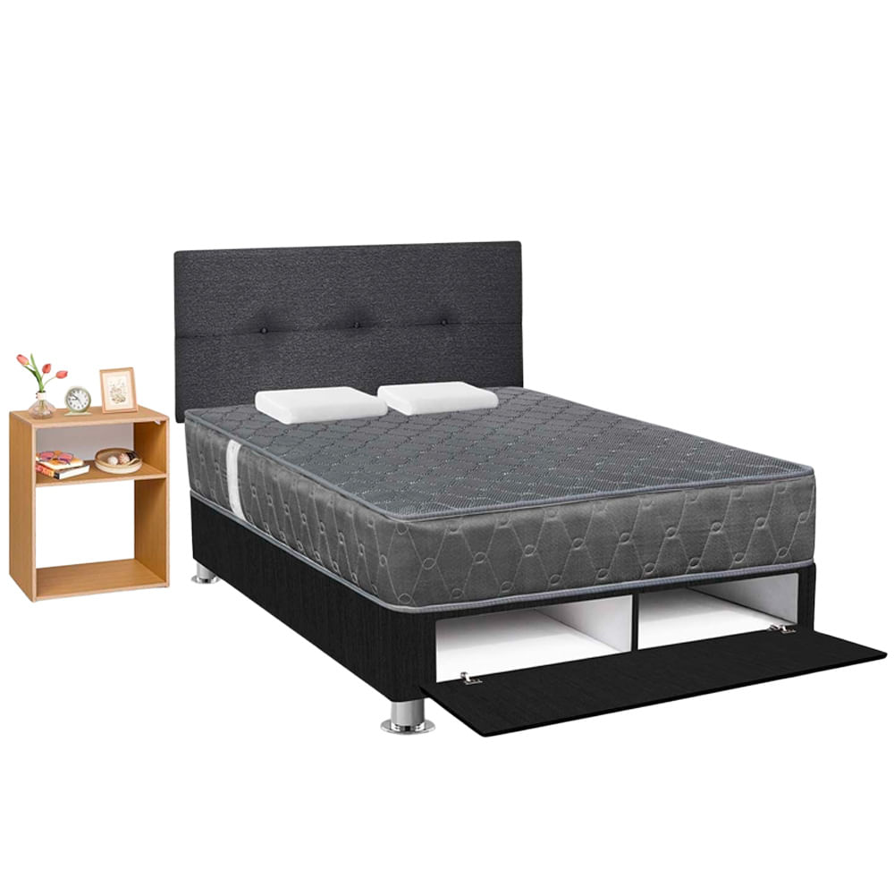 Dormitorio FORLI Sabanera Acqua Gris 2 Plazas + Velador TURIN Beige