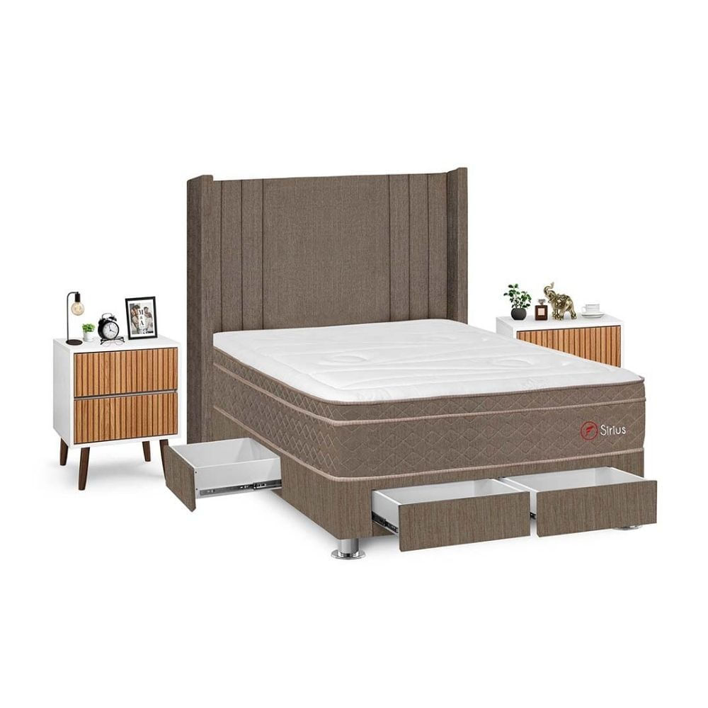 Juego de Dormitorio Forli Sirius 4 Cajones 2 Plazas Marrón + Velador Milan