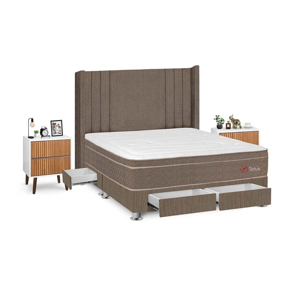 Juego de Dormitorio Forli Sirius 4 Cajones King Marrón + Velador Milan