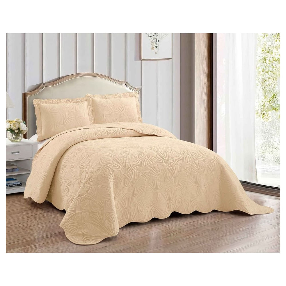 JUEGO DE EDREDON LUJO 3 PIEZAS TELA CON TELA DE VERANO 2 PLAZAS Beige