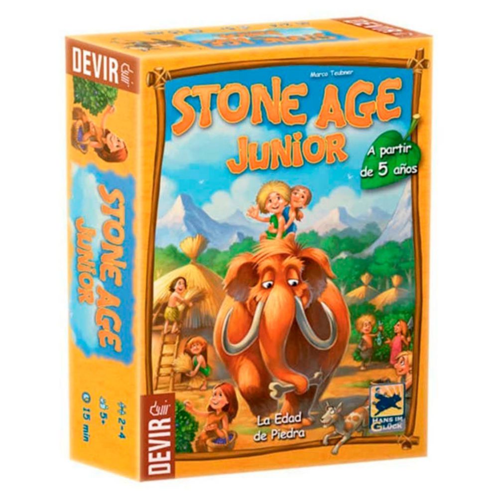 | Incluye | Premiado con el Kinderspiel des Jahres en 2016, llega la versión infantil de uno de los juegos más exitosos de Devir, Stone Age, creada por Marco Teubner, autor de Carcassonne Junior. En la Edad de Piedra los humanos tenían una forma de vida muy distinta. Consigue recursos, construye poblados y averigua con las historias de Bubo y Leta cómo vivían las personas y descubre como era su día a día. |
