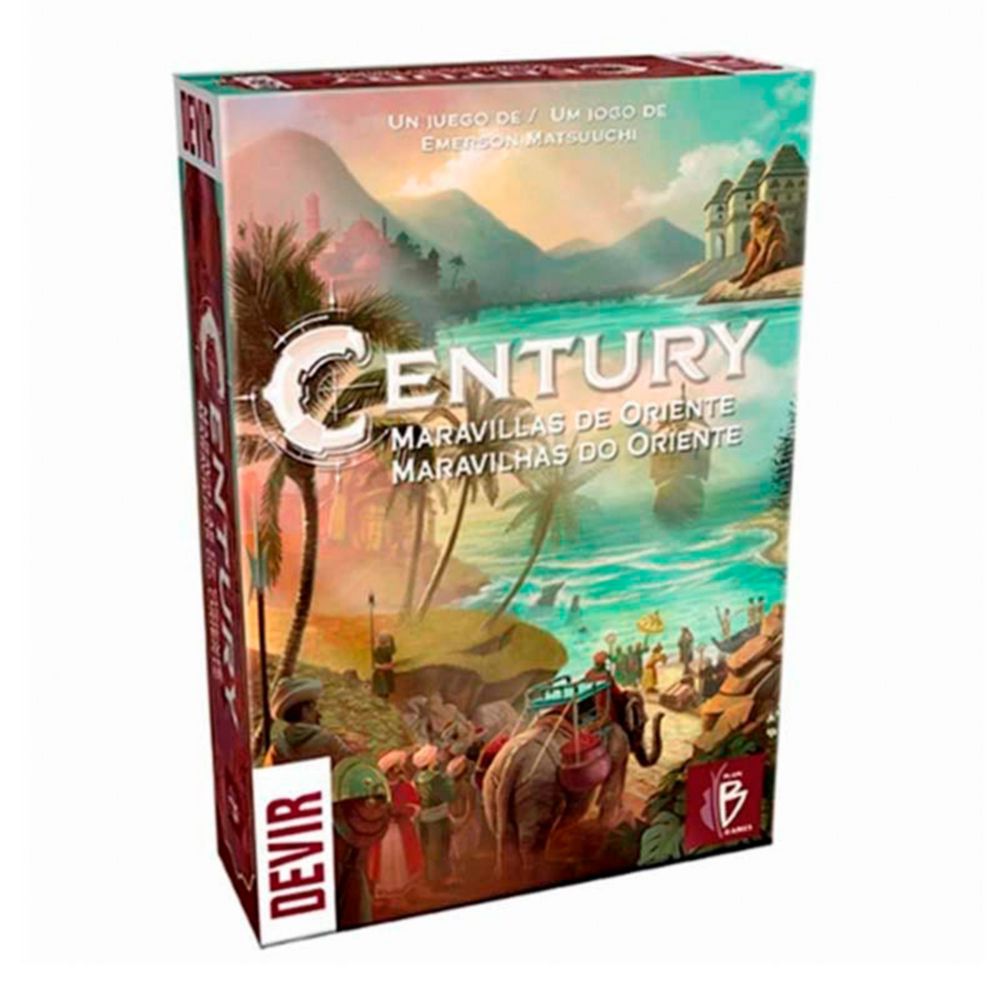 | Incluye | Century es un juego independiente y jugable por si mismo, pero que se combina perfectamente con la primera entrega Century: La Ruta de las Especias y pronto se podrá combinar con la tercera y ultima entrega de la trilogía Century. Se escucha en los puertos que se ha descubierto una tierra rica en especias, y en pleno siglo XV todo el mundo quiere navegar hacía Asia y ver las islas de Indonesia donde poder hacer riqueza. Hay que encontrar buenas y productivas rutas que nos den beneficios y riqueza, pero sobretodo, lo más importante es que tenemos que hacerlo antes que lo haga el resto de navegantes y mercaderes. Subíos a este navío y que los vientos os lleven adelante, porque hoy descubrimos… Century, Maravillas de Oriente. |