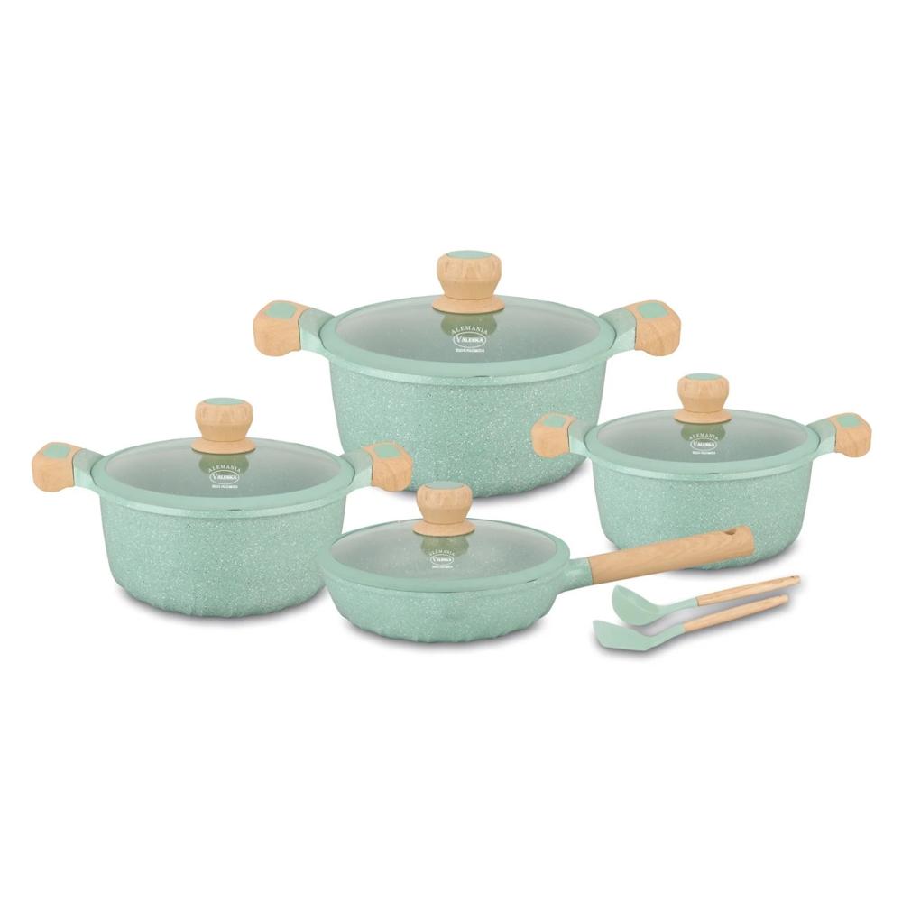 Juego de Ollas de Roca Volcánica Valeska 10pzs Verde