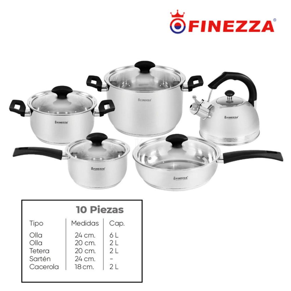 Juego de Ollas Finezza de 10 Piezas de Acero Inoxidable FZ-1060TG