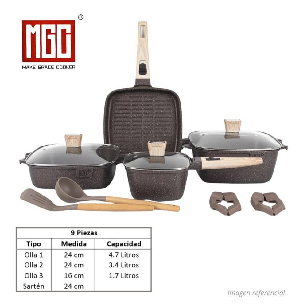 JUEGO DE OLLAS MGC DE 9 PIEZAS ROCA VOLCANICA CAFE Marrón