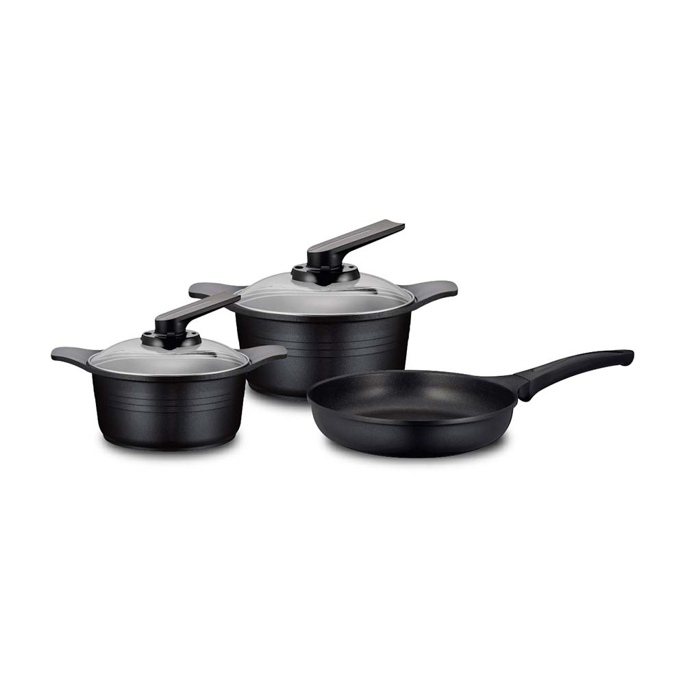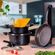 Juego de Ollas Aluminio Roichen Negro Libre de PFOA 5 Piezas