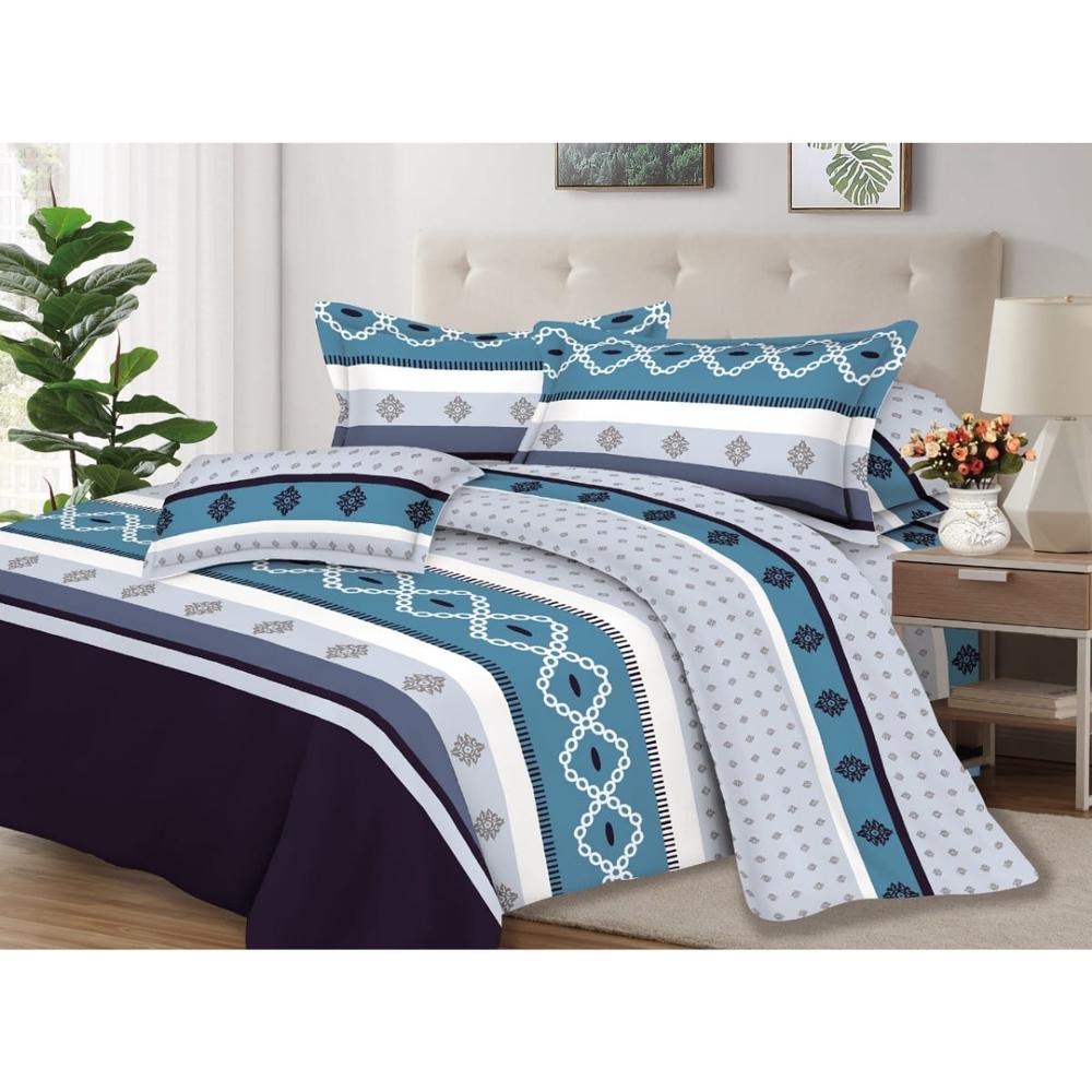 Juego de Sábanas 100% Algodón 2Plazas 4 Piezas 2000 Hilos Celeste Gris
