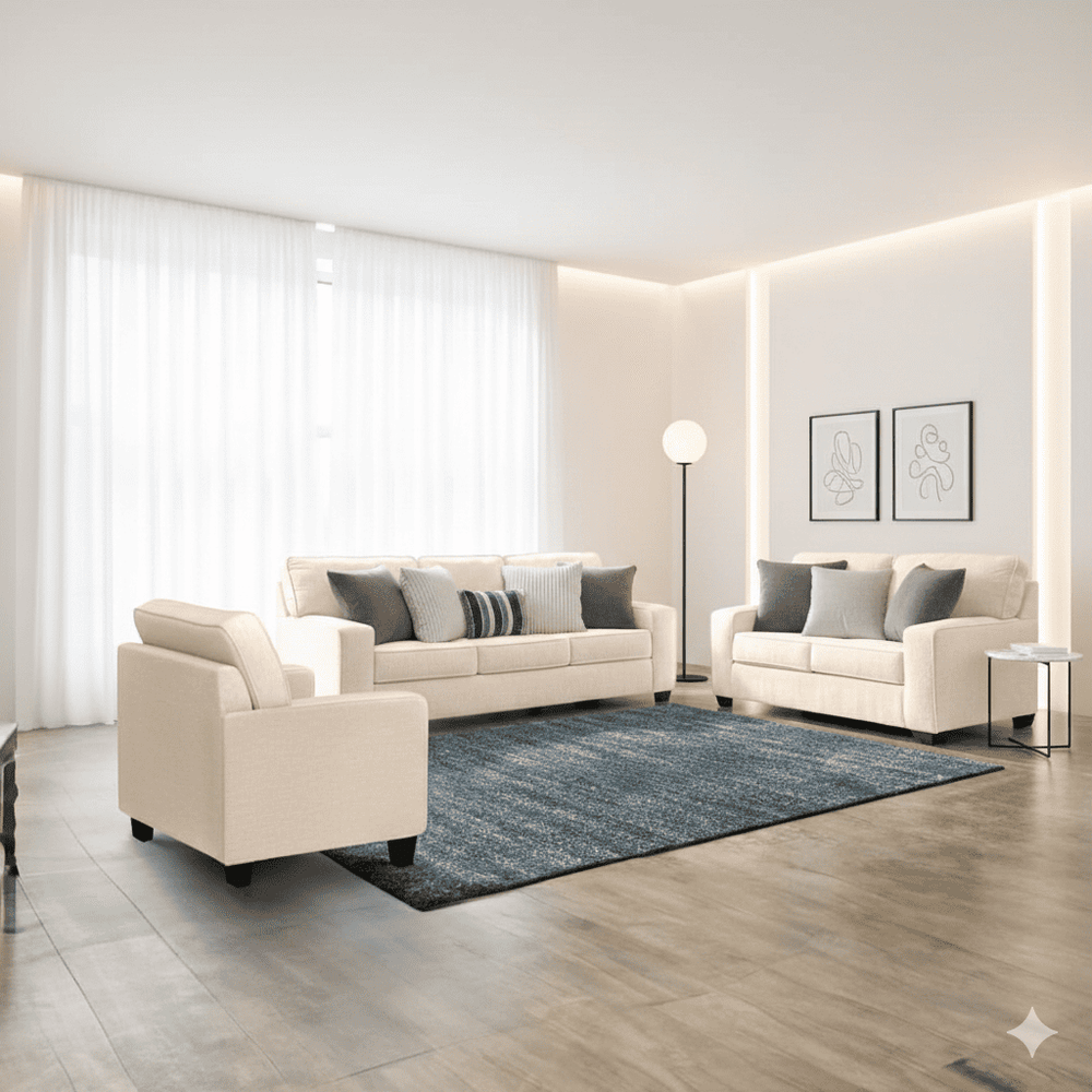 Juego de Sala Raven 3-2-1 y Banqueta Beige