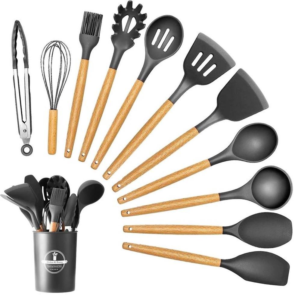 Juego De Utensilios De Cocina De Colores 12 Pcs Color Gris