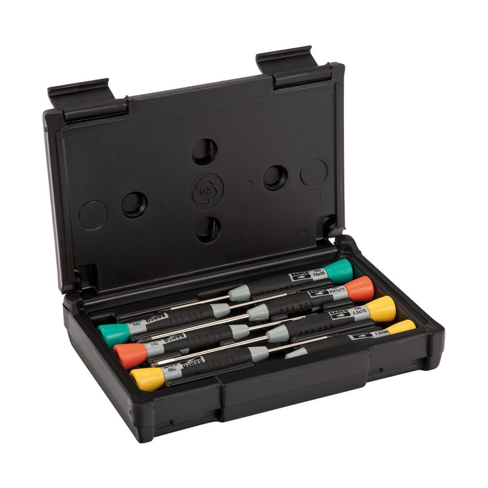 | Incluye | Contenido: 1 destornillador Bahco tipo plano (1,2x8x150mm ) 1 destornillador Bahco tipo plano (1,2x6,5x150mm) 1 destornillador Bahco tipo plano (1,2x6,5x125mm) 1 destornillador Bahco tipo estrella (PH2x125mm) 1 destornillador Bahco tipo plano (1,0x5,5x100mm) 1 destornillador Bahco tipo estrella (PH1x100mm) 1 destornillador Bahco tipo estrella (PH0x75mm) 1 Estuche porta herramientas |