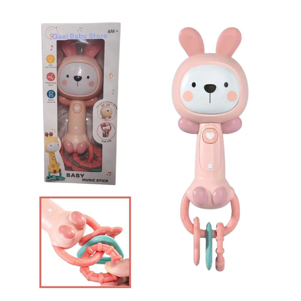 Juguete Sensorial Musical Sonajero Mordedor para Bebés Conejito