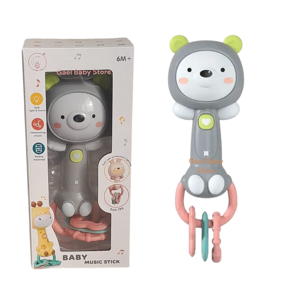 Juguete Sensorial Musical Sonajero Mordedor para Bebés Osito