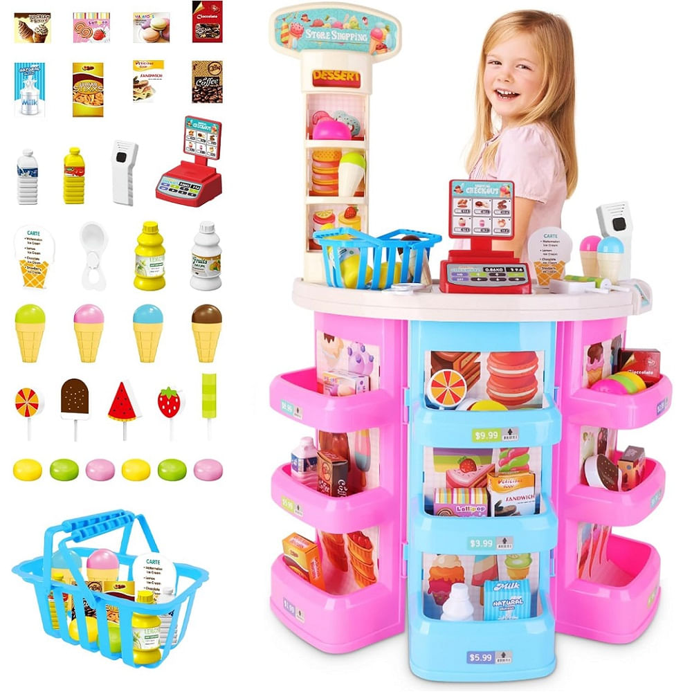 Juguete Set Supermercado de 49 pcs Heladeria Luces y Sonidos