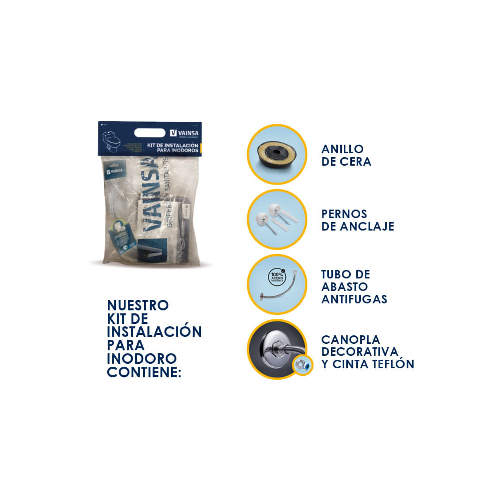 Kit de Instalación Premium para Inodoro Vainsa Gris de Acero Inoxidable/Plástico