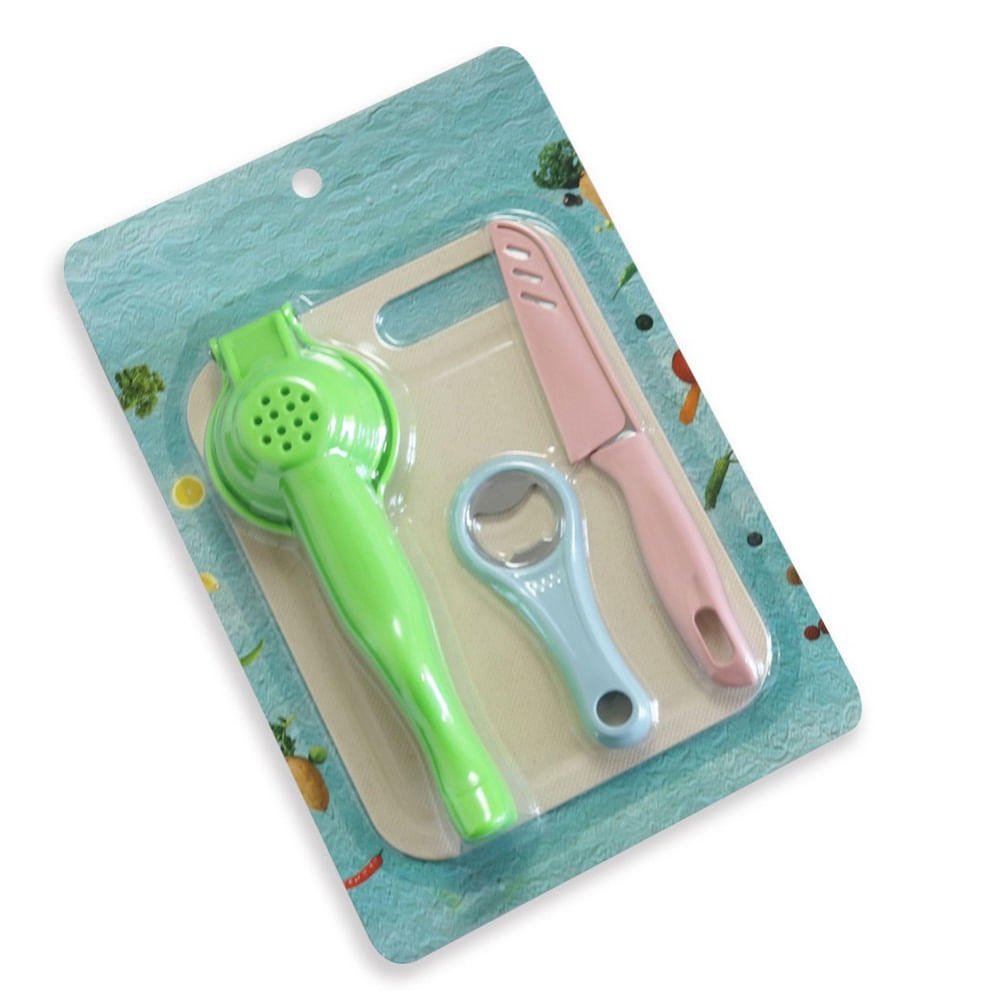 Kit de Utensilios de Cocina Exprimidor Tabla Descorchador y Cuchillo