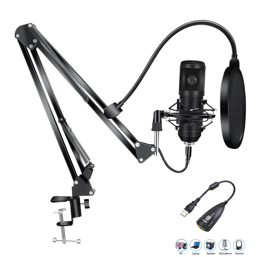Kit Micrófono Condensador Para Estudio Pc Lapto Podcast BM800 Negro