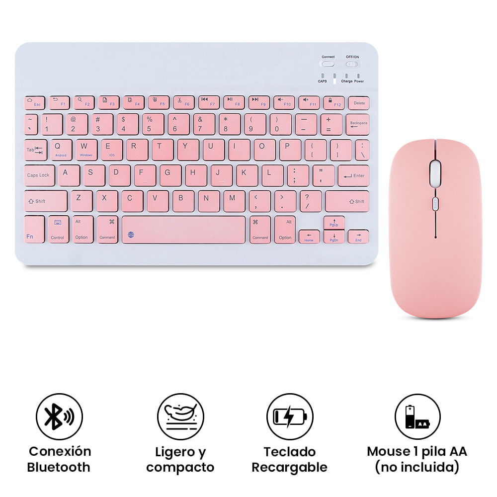 Kit Teclado + Mouse Inalámbrico Bluetooth Rosado