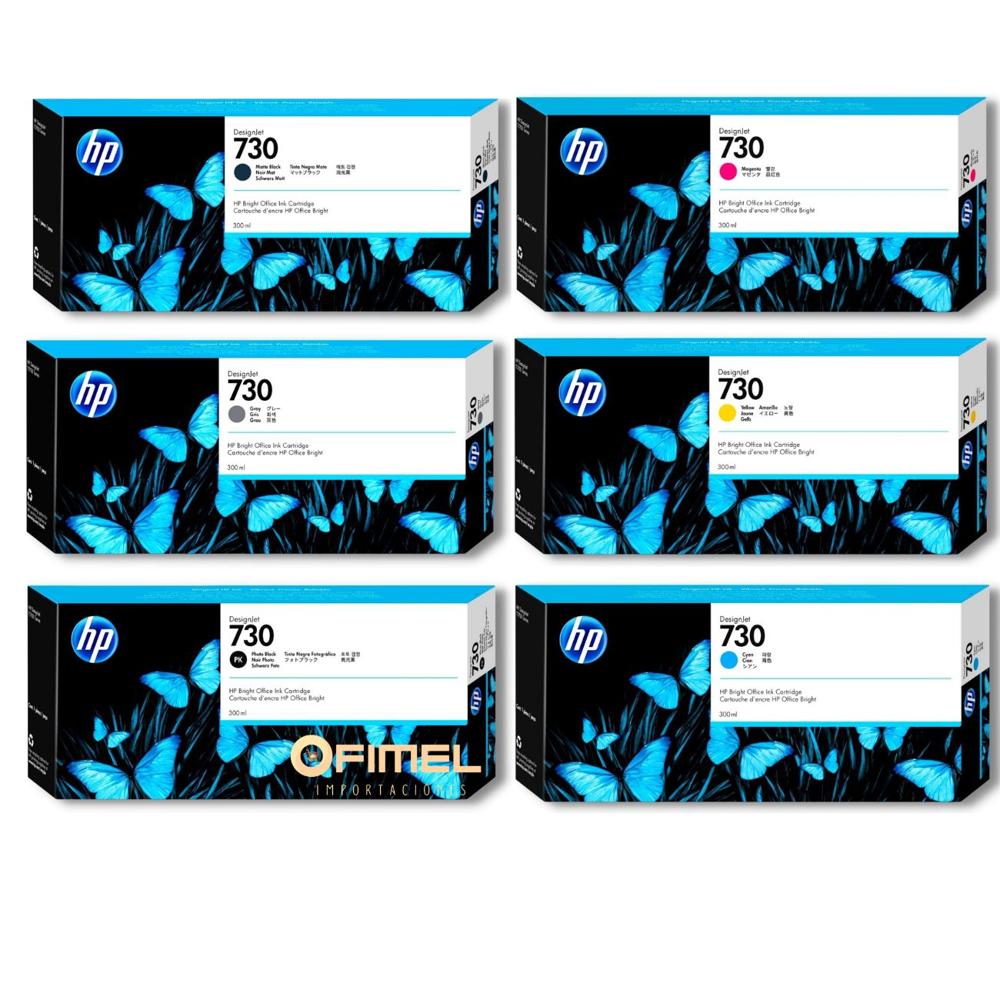 Kit Tinta HP 730 Mate Negro Cyan Magenta Amarillo Photo Black Gris Original