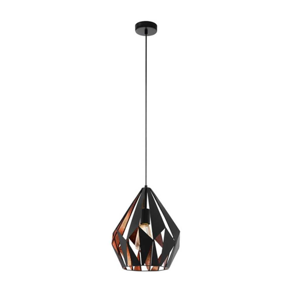 | Características | La colgante Carlton 1 está formada por una pantalla de metal negro en forma de diamante con interior de color cobre. Las aberturas geométricas en el cuerpo metálico crean un fascinante juego de luces y sombras en la pared. La colgante completa el mobiliario de estilo vintage moderno y queda bien en cualquier estancia, ya sea en el salón o en el comedor, sobre la mesa. La bombilla de filamentos que se muestra no está incluida. La es apta para cualquier bombilla con casquillo E27. |